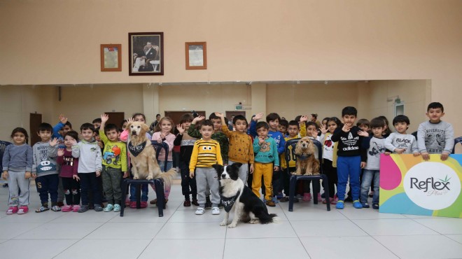 Çocuklara hayvan sevgisi aşılamayı ve hayvan hakları konusunda bilinçlendirmeyi hedefleyen Karşıyaka Belediyesi, yetenekli köpekler Tarçın, Ego ve Müdür’ü anaokullarında konuk ediyor. Köpek eğitmenleri eşliğinde gerçekleştirilen eğlenceli etkinlik ve gösteriler, miniklerden büyük ilgi görüyor.