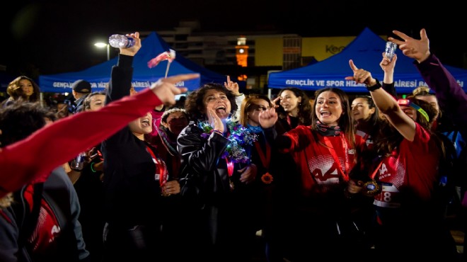 8 Mart koşusuna toplumsal cinsiyet eşitliğine dikkat çekmek isteyen kadın erkek 7’den 70’e İzmirli büyük ilgi gösterdi. Saat 20.00’de Neptün Soyer, Öznur Tugay ve Nilay Kökkılınç kornalarla koşuyu başlatarak maratona katıldı. Katılımcılar, Havra Sokağı üzerinden Tarihi Kemeraltı Çarşısı’ndaki parkuru takip ederek Konak’taki Turuncu Bahçe’ye kadar dört kilometrelik parkuru tamamladı.