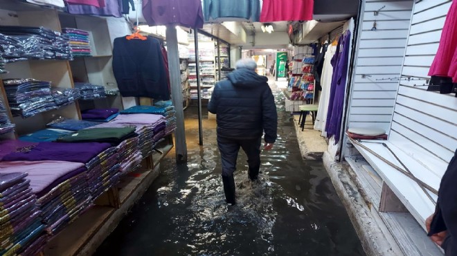 İzmir'de sabah saatlerinden itibaren başlayan sağanak yağmur, kent genelinde yaşamı olumsuz etkiledi. Cadde ve sokaklar yağmur sularıyla dolarken; Çankaya, Alsancak ve Basmane gibi merkezi semtlerdeki araç trafiğine sıkışıklıklar yaşandı. Tarihi Kemeraltı Çarşısı'ndaki bir işhanını ise, yağmur suları nedeniyle su bastı. Han içindeki bazı işyerlerinde küçük çaplı maddi hasar meydana geldi. Gelinlik satan Mevlüt Uygan, " Yağış sabah daha fazlaydı, şimdi biraz kesildi. Kemeraltı'nda altyapı yetersizliği nedeniyle her yağmurda biz bu sorunu yaşıyoruz.Geçen yağmurda dükkana olduğu gibi su girmişti ve yaklaşık 100 gelinlik zarar görmüştü. Kemeraltının uzun yıllardır çilesi bu. Biraz şiddetli yağmur yağdı mı hemen su basıyor. Yetkililere seslendik ve sesimizi duyurmaya çalıştık. Çözüm bulmaya çalışıyorlar ama yeterli olmuyor.. Altyapının komple değişmesi gerek. Değişmez ise, bu sorun uzun yıllar devam edecek gibi görünüor" dedi. (DHA)
