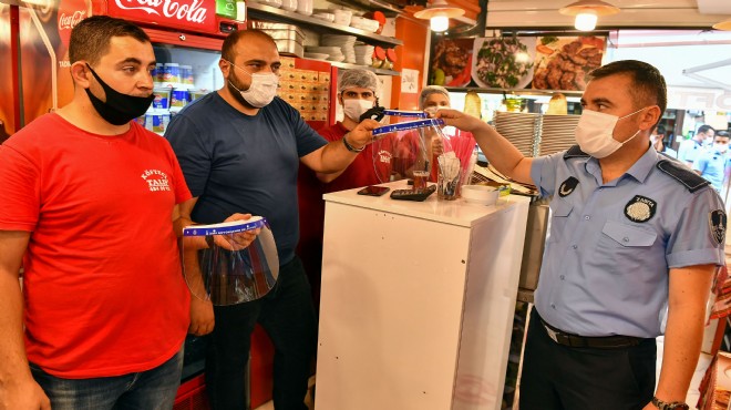 İzmir Büyükşehir Belediyesi, koronavirüs salgınına karşı önlemler almaya, normalleşme sürecinde de devam ediyor. Çalışmalar kapsamında İzmir’in gözde alışveriş merkezi Kemeraltı’ndaki gıda işletmelerine Tarihi Kemeraltı Esnaf Derneği işbirliğiyle koruyucu ekipmanlar arasında yer alan siperlik dağıtıldı. Gün içerisinde binlerce insanın dolaştığı çarşı esnafına yönelik uygulama memnuniyetle karşılandı. Tarihi Kemeraltı Esnaf Derneği Başkanı Semih Girgin, çarşıdaki esnafın koruyucu ekipmana ihtiyaç duyduğunu, Büyükşehir Belediye Başkanı Tunç Soyer’in bu hassasiyetinin ise kendileri için çok önemli olduğunu belirtti. Aynı zamanda Kemeraltı için bu tür küçük dokunuşların değerli olduğunun altını da çizen Semih Girgin, düğün ve nişan gibi özel etkinliklerin yeniden başladığını belirterek “Dü ğünler yeniden başladığı için biz bayram telaşı içerisindeydik. Her bayram telaşının küçük bir armağanı olur. Bu da esnaf için bayram armağanı oldu” dedi.