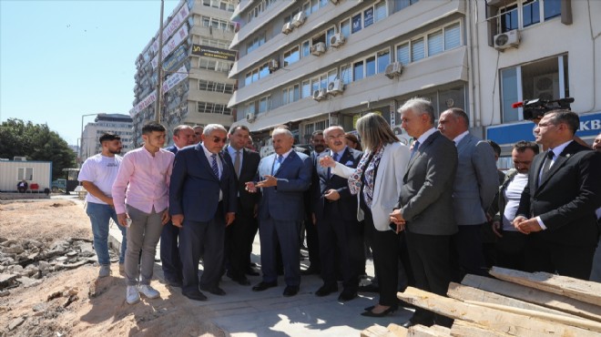 İzmir İktisat Kongresi tarihi binasının yeniden yapıldığı alanda incelemede bulunan Yıldırım, yetkililerden bilgi aldı.