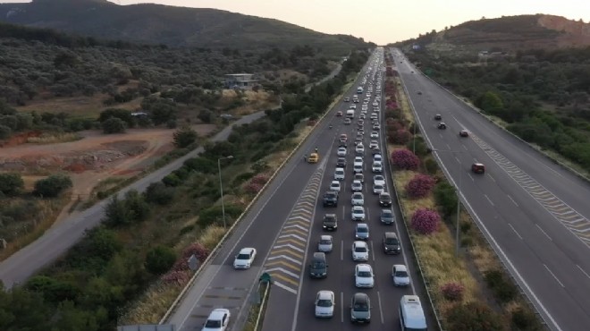 Akşam saatleriyle birlikte araçlarıyla yola çıkanlar, Çeşme-İzmir Otoyolu'nda uzun kuyruklar oluşturdu.