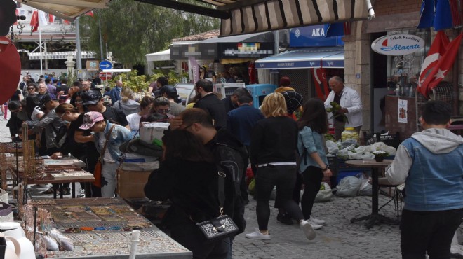 Otellerde boş oda bulunamazken özellikle Alaçatı Mahallesi'nin sokakları insan kalabalığıyla doldu taştı.