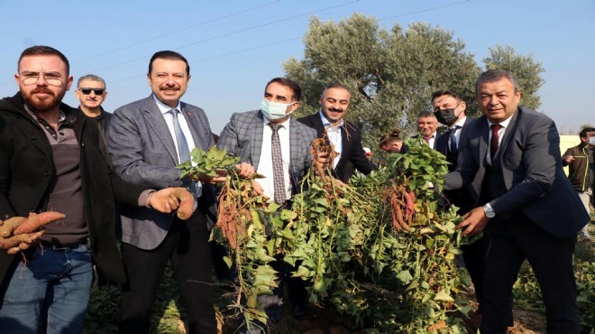 Türkiye'de üretimi az olan tatlı patatesin kırmızı ve mor türleri İzmir İl Tarım ve Orman Müdürlüğü ve Torbalı İlçe Müdürlüğü teknik personelinin üretimin her aşamasında verdiği destek ile yetiştirildi ve hasat olgunluğuna geldi. Hasat için düzenlenen tarla gününe İzmir Ak Parti Milletvekili Mahmut Atilla Kaya, Torbalı Kaymakamı Ercan Öter, İzmir Tarım ve Orman İl Müdürü Mustafa Özen, Torbalı Ziraat Odası Başkanı Yılmaz Girgin, Torbalı Ticaret Odası Başkanı Abdulvahap Olgun, kurum müdürleri, muhtarlar ve üreticiler katıldı. Tarla gününde konuşan İzmir İl Tarım ve Orman Müdürü Mustafa Özen, üretici Şerafettin Baba'nın kendilerine ulaşmasıyla ilk andan itibaren her türlü desteğin sunulması talimatını verdiğini belirterek "İzmir gerçekten büyük bir üretim potansiyeline sahip olmasının yanı sıra yarattığı katma değer ile de öncü bir şehir. Çok bereketli topraklardan oluşan ve Ege'nin incisi olan İzmir'imizde 150'nin üzerinde bir bitkisel ürün çeşitliliğine sahibiz. Bugün burada hasat ettiğimiz tatlı patatesimiz ile bu çeşitliliğimizi biraz daha artırmış olduk. Devletimizin verdiği destekler ve üreticilerimizin üretme heyecanı ve çabasıyla el ele verip pandeminin bu zorlu dönemlerini de yenip birlikte başaracağız" dedi.