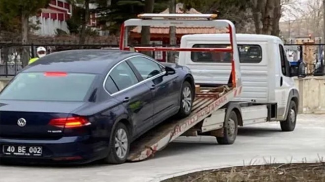 Dönmez, icra takibi karşılıksız kalınca belediyeden alacağı 60 bin liranın tahsili için Kırşehir Belediye Başkan Yardımcısı Nuri Araz’a tahsis edilen 40 BE 002 plakalı makam aracını haczettirdi. Çekiciye yüklenen otomobil otoparka götürüldü