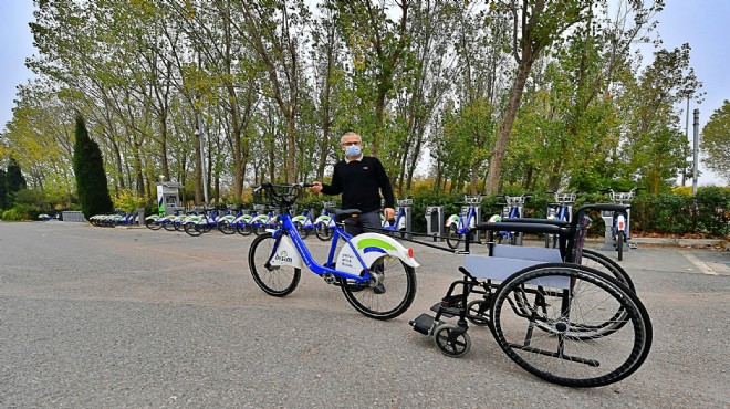 Büyükşehir Belediye Başkanı Tunç Soyer görme engelli bireylerin, bisiklet keyfini özgürce yaşamaları için Türkiye’de ilk defa hayata geçirilen iki sürücülü (tandem) bisiklet uygulamasının ardından şimdi de tekerlekli sandalyelerle bisiklet arasındaki engeli kaldırdı. İzmir Büyükşehir Belediyesi tarafından Türkiye’de ilk defa başlatılan uygulama sayesinde bedensel engeli bireyler, Akıllı Bisiklet Kiralama Sistemi (BİSİM) istasyonlarından tedarik edecekleri özel parça sayesinde tekerlekli sandalyelerini bisikletlere bağlayıp sevdikleriyle bisiklet dostu şehir İzmir’in tadını çıkarabilecek.