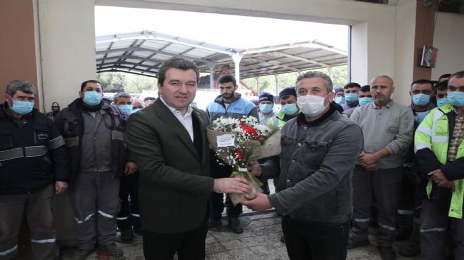 Belediye Temizlik İşleri Müdürlüğü’nde çalışan işçilerin müdür ve amirleri ile birlikte organize ettiği etkinlik, işçilerin dinlenme salonunda gerçekleştirildi. Etkinliğe davet edilen Belediye Başkanı Hakan Koştu, Belediye Başkan Yardımcıları Aşkın Uyar, Cüneyt Umutlu, Hizmet-İş Sendikası İzmir Şube Başkanı Gültekin Şimşek ve sendika temsilciler hep birlikte katıldı. Başkan Koştu, gelişinde işçiler tarafından alkışlar ile karşılandı. ‘En Büyük Başkan, Bizim Başkan’ diye tezahüratta bulunan işçiler, tatlı ve meşrubat ikramı yanında Belediye Başkanı Hakan Koştu, Hizmet-İş Sendikası Başkanı Gültekin Şimşek, Belediye Başkan Yardımcıları Aşkın Uyar, Cüneyt Umutlu ve temsilciler adına Sendika Baş Temsilcisi Ferit Özcan’a çiçek verdiler.