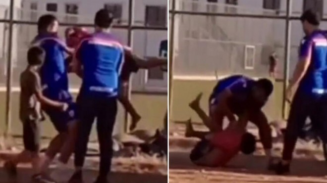 Mardin'in Kızıltepe ilçesinde, arkadaşları ile kavga ederken elinde muşta bulunan Y.Ö.'ye (9) müdahale eden, direnince de havaya kaldırıp, yere düşüren antrenör Cemil Kuday ailenin şikayeti üzerine gözaltına alındı. O anlar, cep telefonu kamerasına yansıdı.