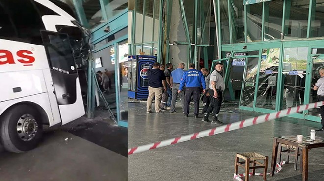Olay, saat 11.30 sıralarında İzmir Otobüs ve Şehir Terminali’nde meydana geldi. İzmir- Erzurum arası sefer yapacak olan M.K. yönetimindeki 34 BN 7040 plakalı Esadaş Firması’na ait otobüs, yolcu bekleme alanına çarptı. Ölen ya da yaralananın olmadığı, bekleme alanındakilerin hemen uzaklaştığı kazada, profiller ve camlar kırıldı.(DHA)
