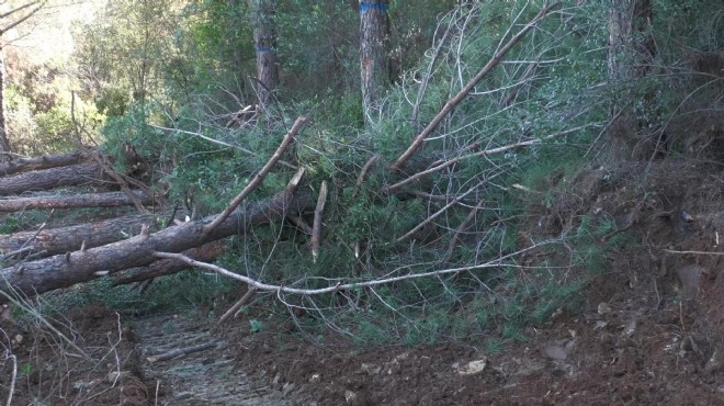 ANKA Haber Ajansı'ndan Fatih Özkılınç ve Kerim Uğur'un haberine göre; Yeni yol güzergahı üzerinde bulunan yüzlerce zeytin, incir ve çam ağacının kesimine başlanmasının ardından mahalle sakinleri onlarca çam ağacının köklendiği alanda ağaçların talan edilmesine tepki gösterdi.