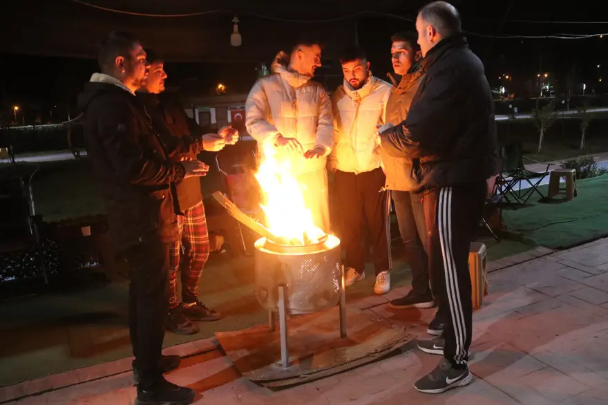 Depremin ardınadn geceyi sokakta geçiren Tokatlılar, ateş yakarak ısınmaya çalıştı.