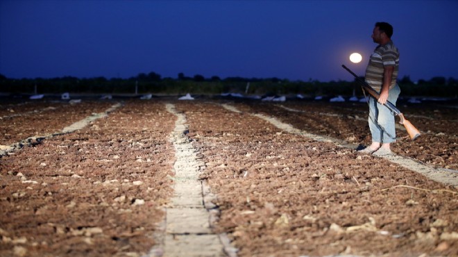"Gündüzleri yaş üzüm kesiyoruz geceleri de traktörün far ışığından yararlanarak kurutma işlemini gerçekleştiriyoruz. Gecenin ilerleyen saatlerinde hırsızlık olayları ve yabani hayvanlara karşı uyarı atışları yapıyoruz. Sabaha kadar uyumadan sergimizin başında üzümlerin kurumasını bekliyoruz. Çoğunlukla yabani hayvanların üzümlere zarar vermesi ya da üzümlerimizin çalınmaması için ruhsatlı tüfeğimizle sergi yerini bekliyoruz." (AA)