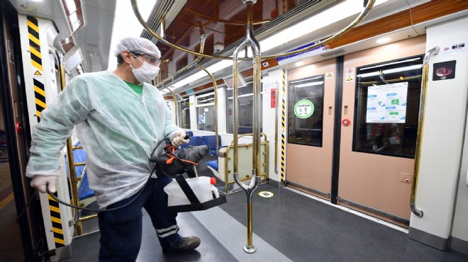 Metro vagonları, Fahrettin Altay İstasyonu’nda; Karşıyaka Tramvay araçları, Alaybey Durağı’nda ve Konak Tramvay araçları da Halkapınar Durağı’nda, en ince ayrıntısına kadar dezenfekte ediliyor. ESHOT ve İZULAŞ otobüsleri ile İZDENİZ gemileri de her seferden sonra deyim yerindeyse baştan aşağı arındırılıyor. Gün sonunda da tüm toplu ulaşım araçları yine temizleniyor, dezenfekte ediliyor. Çalışmalarda; hem kurum ve kuruluşların kendi personeli hem de İzmir Büyükşehir Belediyesi Çevre Sağlı Daire Başkanlığı’na bağlı uzman personel görev yapıyor.