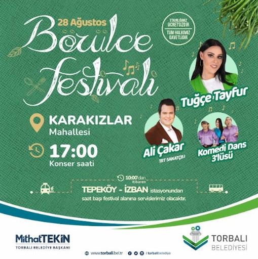 Torbalı Belediyesi hem değerlerini tanıtmak hem de kır turizmini yaygınlaştırmak amacıyla kültürel etkinliklere devam ediyor. Bu kapsamda iki hafta önce kırsal Çapak Mahallesi’nde Bardacık İncir Festivali düzenleyen Torbalı Belediyesi, üreticinin kalkınması için 28 Ağustos Pazar günü de Karakızlar’da “Börülce Festivali” düzenleyecek. Doğası, kültürü, tarımsal ürünleri ile dikkatleri üzerine çeken Karakızlar’da düzenlenecek olan festivalde Tuğçe Tayfur, TRT sanatçısı Ali Çakar ve Komedi Dans 3’lüsü sahne alacak. Festivale katılımın yoğun olması beklenirken, festival için İzmir’den İZBAN aracılığıyla gelen yolcular için saat 10:00’dan itibaren Tepeköy İZBAN İstasyonundan saat başı ücretsiz otobüs kaldırılacak.