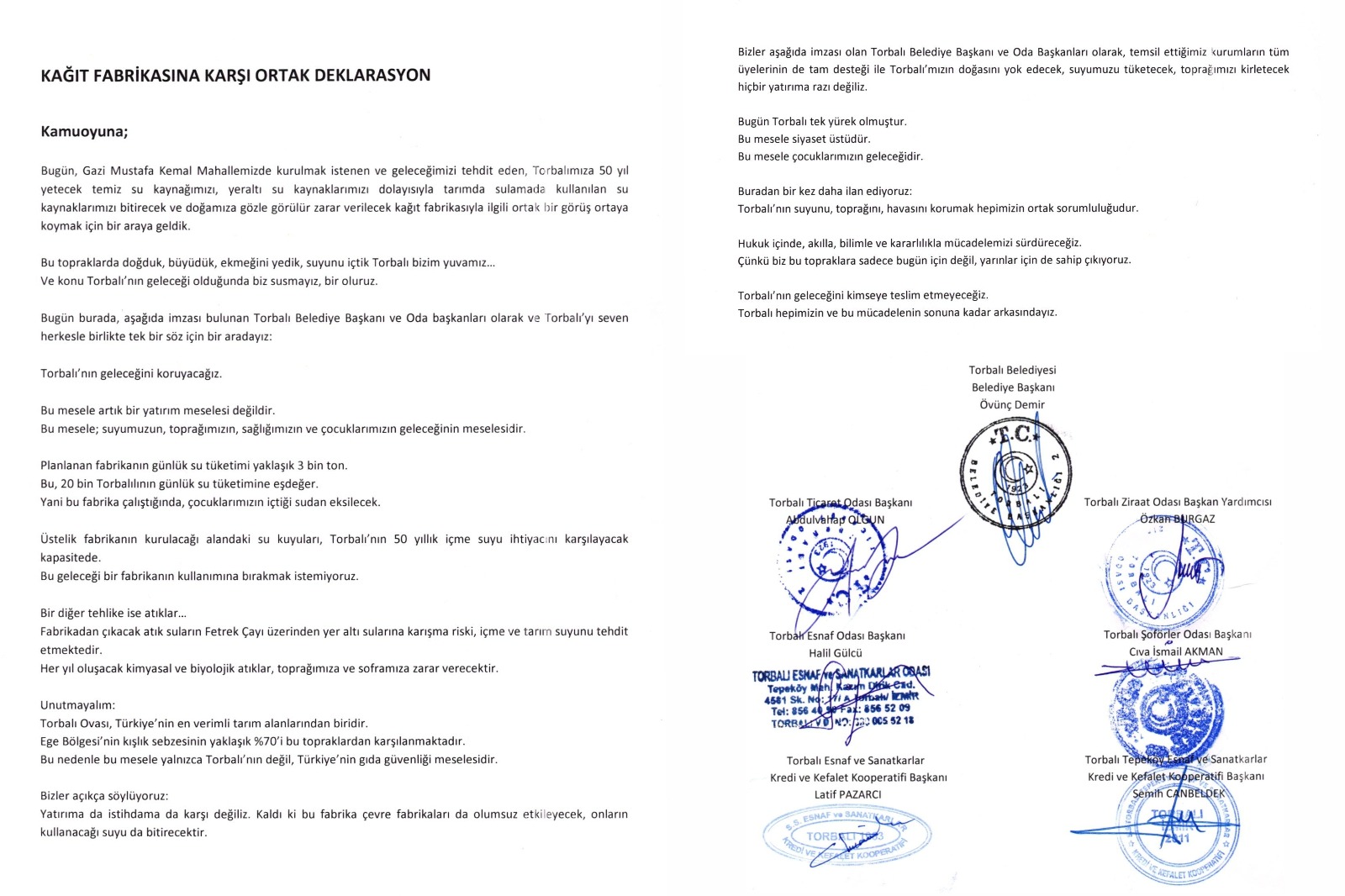 KAĞIT FABRİKASINA KARŞI ORTAK DEKLARASYON