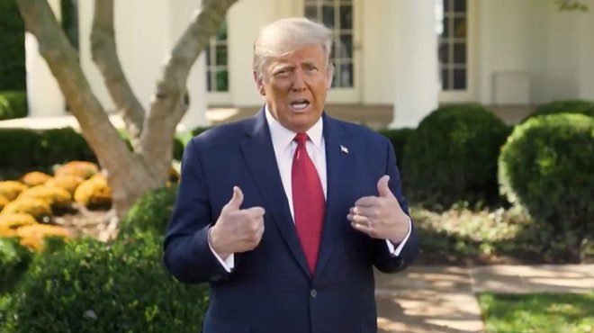 Trump, Beyaz Saray'ın bahçesinde, Oval Ofis'in önünde kaydettiği video mesajında, Walter Reed Askeri Hastanesinde 4 gün kaldıktan sonra önceki gün Beyaz Saray'da döndüğünü anımsatarak, "Beyaz Saray'da kalabilirdim ancak doktorlar benim başkan olduğumu söyleyerek beni hastaneye götürdüler" ifadesini kullandı.