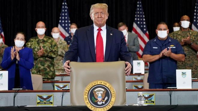 Ülkede son günlerde yaşanan protestoların ardından Demokrat kesimin polis teşkilatlarının dağıtılması ve teşkilatlara fonun kesilmesi taleplerine işaret eden Trump, "Son haftalarda ülkemizin polisleri ablukaya alındı" değerlendirmesinde bulundu.