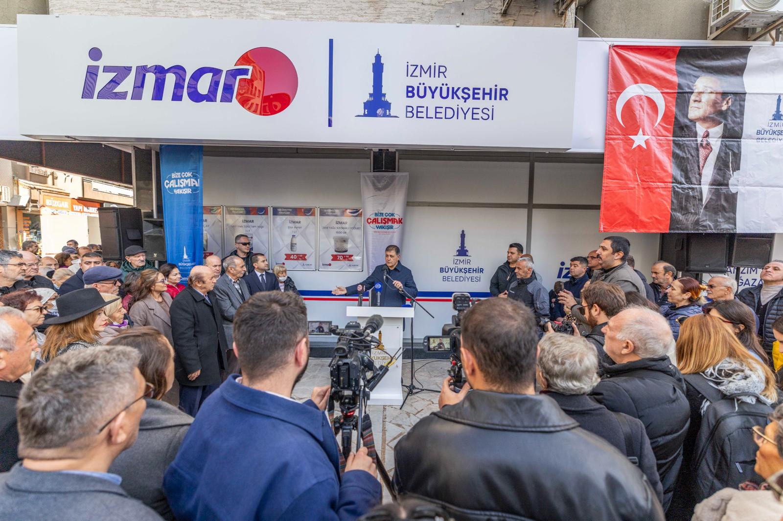 İzmir Büyükşehir Belediyesi’nin tanzim satış mağazası İZMAR’ın 16’ncı şubesi Gaziemir Aktepe’de, 17’nci şubesi ise Karşıyaka Nergiz Mahallesi’nde açıldı. Karşıyaka’daki açılış töreninde konuşan İzmir Büyükşehir Belediye Başkanı Dr. Cemil Tugay, halkın yaşadığı ekonomik zorluklar nedeniyle İZMAR projesini hayata geçirdiklerini belirtti. Marketçilik yapma gibi bir amaçlarının olmadığını vurgulayan Tugay, “Biz marketçiliğe meraklı değiliz. Halkımıza destek olmak, onları insafsız bir piyasaya teslim etmemek için bu çalışmayı yapıyoruz” dedi.