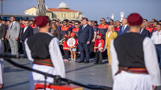 İzmir Büyükşehir Belediye Başkanı Dr. Cemil Tugay, İtfaiye Teşkilatı’nın kuruluşun 310, teşkilatın belediyelere devredilişinin 101’inci yıl dönümü nedeniyle Cumhuriyet Meydanı'nda düzenlenen törene katıldı. Başkan Tugay’ı alana girişte İzmir Büyükşehir Belediyesi İtfaiye Dairesi Başkanlığı’nın Çocuk Kulübü üyesi 5 yaşındaki Elfa Parlak ile Deniz Kalkan ve 7 yaşındaki Ozan Güngör çiçekle karşıladı. Atatürk Anıtı'na çelenk sunulmasıyla başlayan törene Başkan Tugay’ın yanı sıra İzmir Büyükşehir Belediye Meclis Başkan Vekili Altan İnanç, İzmir Büyükşehir Belediyesi Genel Sekreteri Barış Karcı, İzmir Büyükşehir Belediyesi Genel Sekreter Yardımcılarından Prof. Dr. Pınar Okyay, Şükran Nurlu, İtfaiye Dairesi Başkan Vekili Yaşar Korkmaz, CHP eski İzmir Milletvekili Atila Sertel ile itfaiye personeli katıldı.