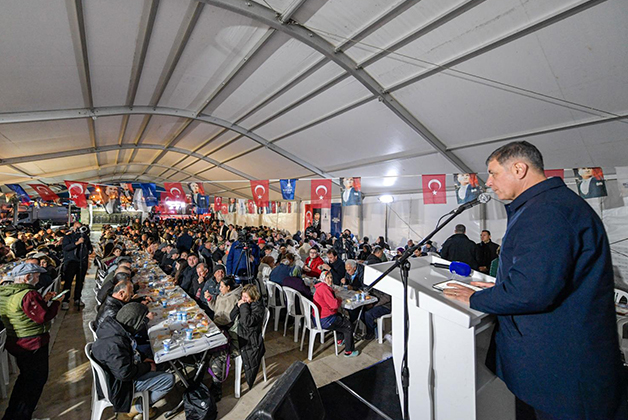30 gün boyunca 30 ilçede iftar sofraları kurduklarını hatırlatan Başkan Tugay, "Zengin, yoksul, yaşlı, genç, kadın, erkek her kesimden insanın eşit bir şekilde bu sofranın etrafında oturduğu ve aynı yemeği yediği bir tablo var. Bu ay birlik beraberlik ayı, bereket ve bolluk dileyeceğimiz bir ay ama bunun için hatırlamamız gereken bir şey var; o da bütün insanların eşit olduğu. Ramazan ayının anlamının bu olduğunu düşünüyorum. Özellikle yönetici pozisyonunda olan, yetkisi olan, makamı ve gücü olan insanların hatırlaması lazım" ifadelerini kullandı.