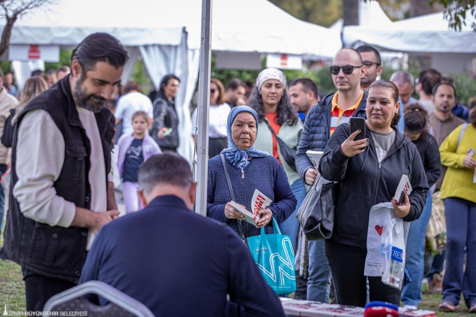 İzmir Büyükşehir Belediye Başkanı Dr. Cemil Tugay, Kültürpark’ta kapılarını açan İZKİTAPFEST - 6. İzmir Kitap Fuarı kapsamında, tutuklu İstanbul Büyükşehir Belediye Başkanı Ekrem İmamoğlu adına gazeteci Yavuz Oğhan’ın kaleme aldığı “Millete Emanet” kitabını İzmirliler için imzaladı. Ekrem İmamoğlu’nun yaşamını, mücadelesini ve ortaya koyduğu çalışmaları anlatan kitabın imza günü, İZKİTAPFEST’in ikinci gününde, Pakistan Pavyonu yanındaki imza alanında gerçekleştirildi. İmza öncesi Kültürpark’a gelen kitapseverlerle kucaklaşan Başkan Tugay, ardından İzmirlilerin kitaplarını imzaladı. Uzun kuyrukların oluştuğu imza etkinliği yaklaşık iki saat sürdü.