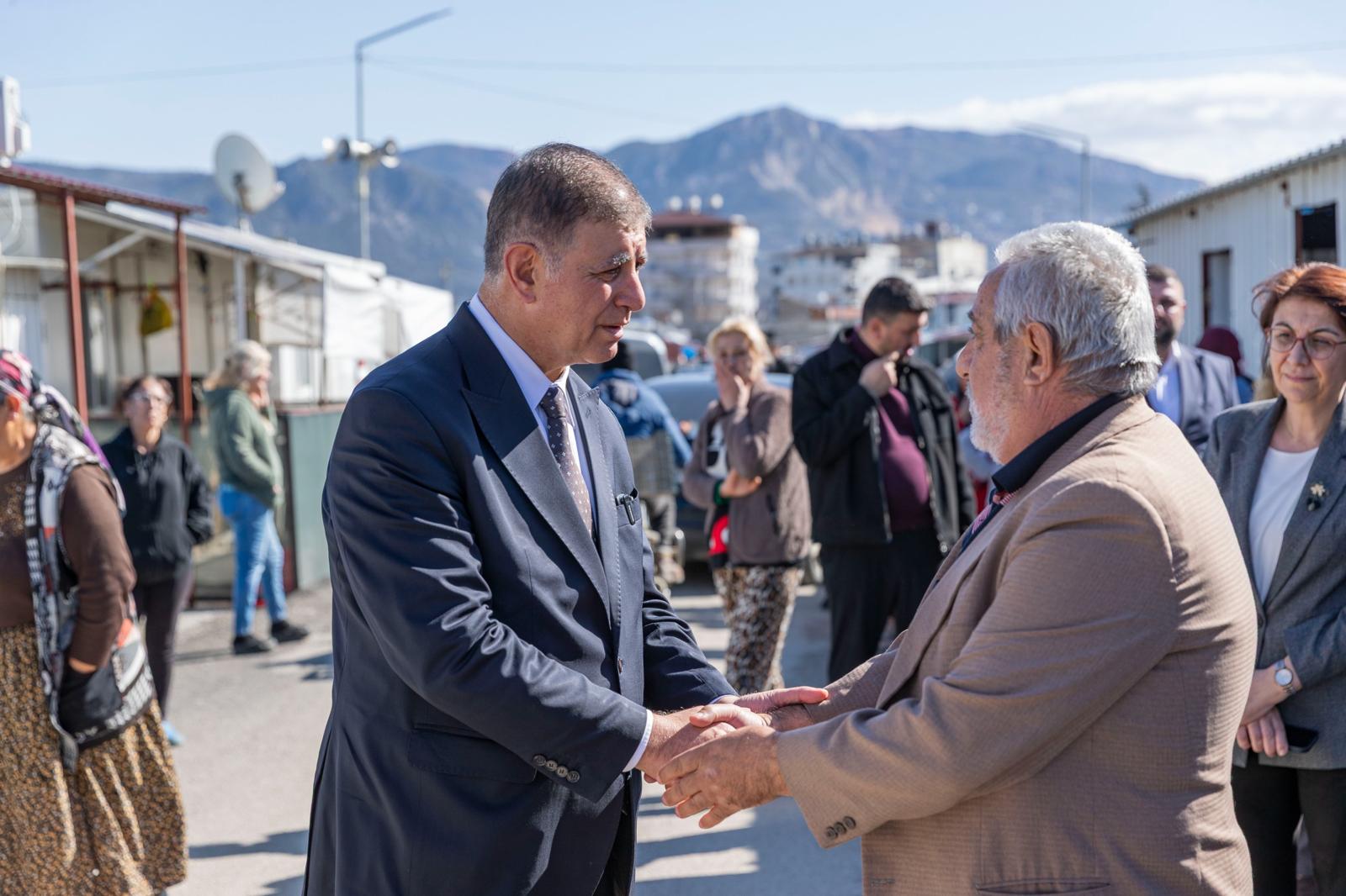 CHP Genel Başkanı Özgür Özel ile İzmir Büyükşehir Belediye Başkanı Dr. Cemil Tugay, 6 Şubat depremlerinin yıl dönümünde Hatay’da depremzedelerle bir araya geldi. Program kapsamında Antakya’da, depremde yaşamını yitiren 4 bin yurttaşın defnedildiği Narlıca Deprem Şehitliği ziyaret edilerek karanfiller bırakıldı. Ardından Defne Çekmece 25 Temmuz Geçici Konaklama Merkezi’ne geçen Özel ve Tugay, konteyner kentte yaşayan yurttaşların sorunlarını dinledi. Başkan Tugay, depremzedelerin yanında olmaya ve çözüm üretmeye devam edeceklerini vurguladı.