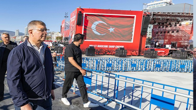 İzmir Büyükşehir Belediye Başkanı Dr. Cemil Tugay, 19 Mayıs Atatürk'ü Anma, Gençlik ve Spor Bayramı'nda düzenlenecek 19 Mayıs İzmir Mitingi için Gündoğdu Meydanı’nda süren çalışmaları inceledi. Yarın İzmir tarihinin en önemli günlerinden birine tanıklık edeceklerini söyleyen Başkan Tugay, “Heyecanlıyız. Cumhuriyet, demokrasi, insan hakları, adalet isteyen herkesi meydana bekliyoruz. Gençliğin Bayramı Türkiye'ye umut, tüm ülkemize moral olacak” dedi.