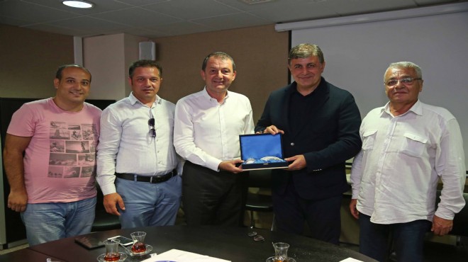 İzmir Şekerciler ve Pastacılar Odası Başkanı İhsan Esen de Karşıyaka’da kadınlara yönelik bir pastacılık kursu açabileceklerini belirterek Başkan Tugay’dan kurs alanı sağlamasını istedi. Yer ihtiyacını hemen karşılayabileceklerini ifade eden Tugay, “Hemen başlayalım, kısa sürede size yer sağlarız. Özellikle kadınlarımızın bu kurslara ilgi göstereceğine inanıyorum” dedi. Ziyaretin sonunda Federasyon Başkanı Yenice, Başkan Tugay’a kahve fincanı takdim ederken, Tugay da Yenice ve ekibine Karşıyaka tarihini anlatan kitaplar armağan etti.