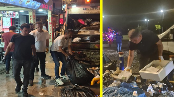 Öte yandan Bornova, Bayraklı, Gaziemir, Urla, Torbalı ve Balçova belediye başkanları Alsancak'a gelerek çöplerin toplanmasında Tugay'a yardımcı oldu.