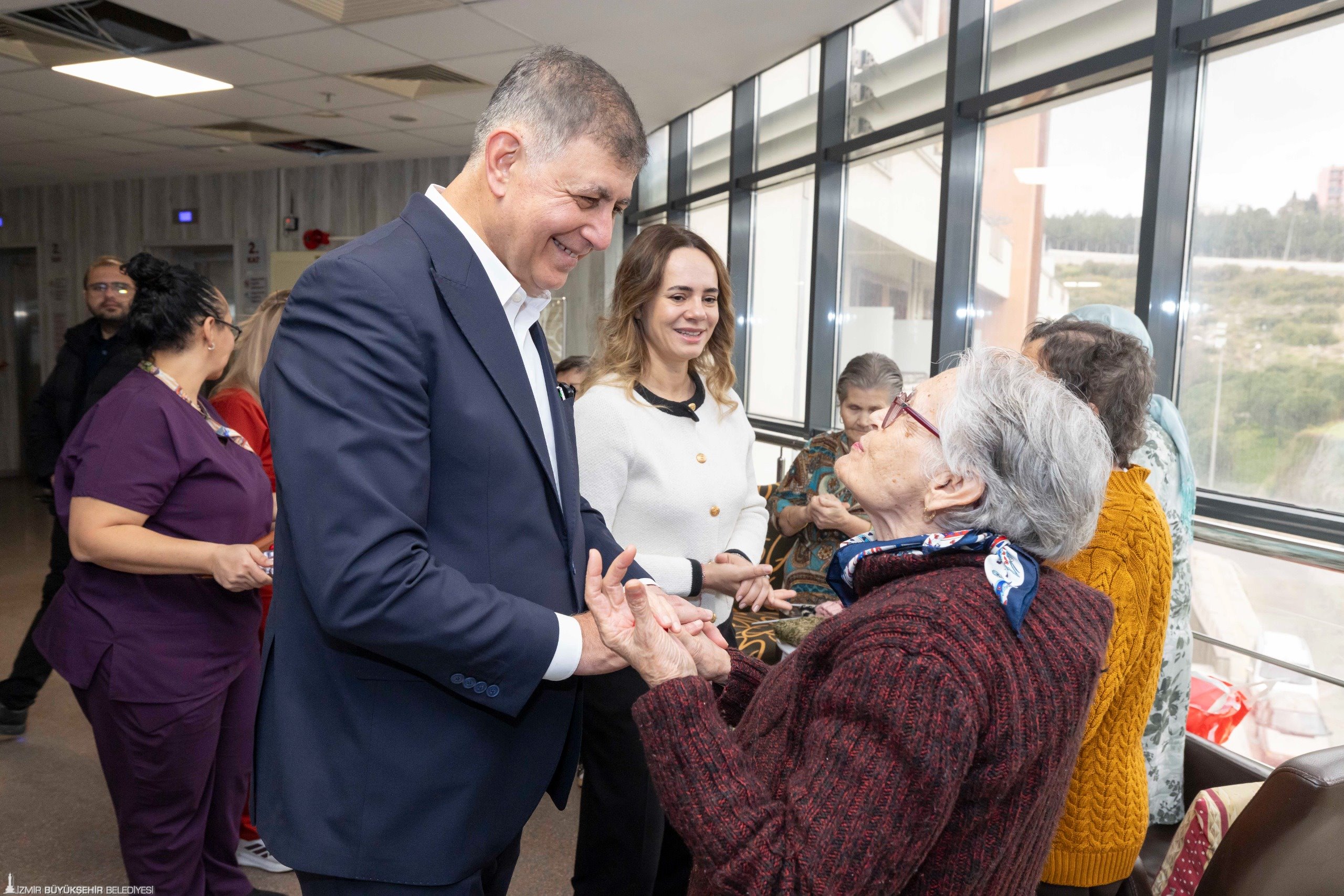 İzmir Büyükşehir Belediye Başkanı Dr. Cemil Tugay, Ramazan Bayramı’nın ikinci gününde huzurevi sakinlerini yalnız bırakmadı. Buca'daki İzmir Büyükşehir Belediyesi Sosyal Yaşam Kampüsü Zübeyde Hanım Huzurevi Yaşlı Bakım ve Rehabilitasyon Merkezi’ne bayram ziyaretinde bulunan Başkan Dr. Cemil Tugay ve eşi Öznur Tugay’a, İzmir Büyükşehir Belediyesi Genel Sekreter Yardımcısı Prof. Dr. Pınar Okyay, Sosyal Hizmetler Dairesi Başkanı Ela Hızlı, Eşrefpaşa Hastanesi Başhekimi Doç. Dr. Başak Bayram ve huzurevi yönetimi eşlik etti. Huzurevi sakinleri, Başkan Tugay’ı ziyarette çiçeklerle ve büyük bir sevgiyle karşıladı.