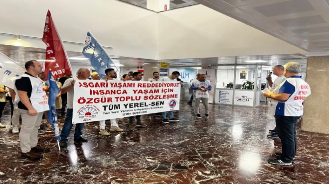 Tüm Yerel Sen Sendikası, haklarını korumak ve kayıplarının hesabını sormak için burada olduklarını belirterek, İzmir Büyükşehir Belediyesi, İZSU ve ESHOT'ta örgütlü Tüm Yerel Sen Sendikası 1 No lu Şube Başkanı Ahmet Kollar ve 3 No'lu şube başkanı Ufuk Cengizler, yaklaşık 6300 emekçinin vereceği yetkiyle toplu sözleşme yapmaya hazır olduklarını duyurdu.