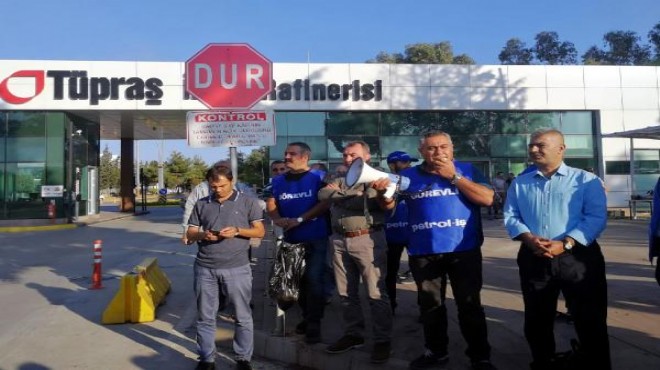Petrol-İş Aliağa Şube Başkanı Oktay'ın ardından söz alan Petrol-İş Genel Örgütlenme ve Eğitim Sekreteri Mustafa Mesut Tekik ise eylemlerin sürdürülmesi durumunda Türaş Kocaeli Rafinerisi'ndeki işçilerin de destek vereceğini belirterek, "Tüpraş yönetimi, 4 ay sonra başlayacak olan TİS görüşmelerimizin arifesinde direnişçi Petrol-İş Sendikasını ve Petrol-İş üyelerini kendi istediği noktaya çekmeye çalışıyor. Bunların ucuz, zamanı geçmiş politikalar olduğunu buradan bir kez daha vurgulamak istiyoruz. Bu tür beyhude çabaların var olan iş barışını da hepten bozacağını hatırlatalım" dedi.