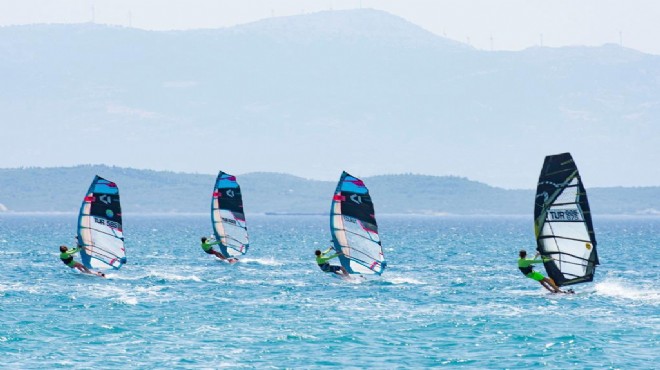 Çandarlı’nın mavi bayraklı Doğu Plajı’nın eşsiz güzelliği ve esen rüzgarıyla sporcular izleyenlere unutulmaz anlar yaşattılar.