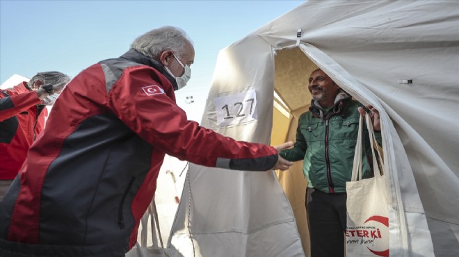 Türk Kızılay Genel Başkanı Kerem Kınık, Buca'daki İzmir Bölge Afet Yönetim Müdürlüğünde, hijyen setlerinin kentin 140 noktasında dağıtımında görev alacak gönüllülerle bir araya geldi.