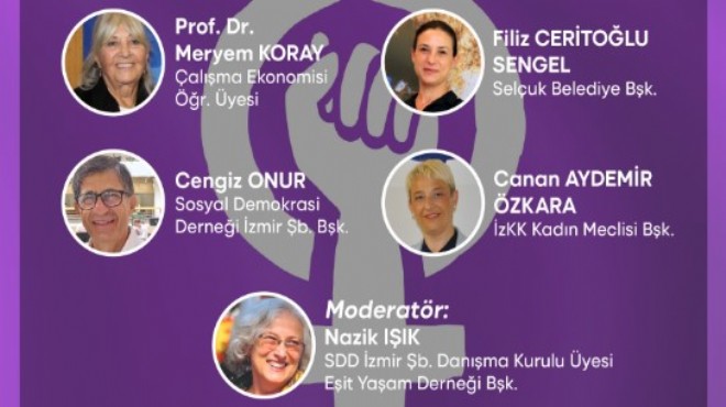 SDD İzmir Şubesi Danışma Kurulu Üyesi ve Eşit Yaşam Derneği Başkanı Nazik Işık ‘ın moderatörlüğünü yapacağı panele, Çalışma Ekonomisi Öğretim Üyesi Prof. Dr. Meryem Koray, Efes Selçuk Belediye Başkanı Filiz Ceritoğlu Sengel, Sosyal Demokrasi Derneği İzmir Şube Başkanı Cengiz Onur, İzmir Kent Konseyi Kadın Meclisi Başkanı Canan Aydemir Özkara konuşmacı olarak katılacaklar.