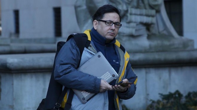 Duruşmaları düzenli olarak takip eden FETÖ firarilerinden Arslan, mahkeme binası çıkışında AA ekibi tarafından görüntülendiğini fark edince olay yerinden hızla uzaklaştı. (AA)