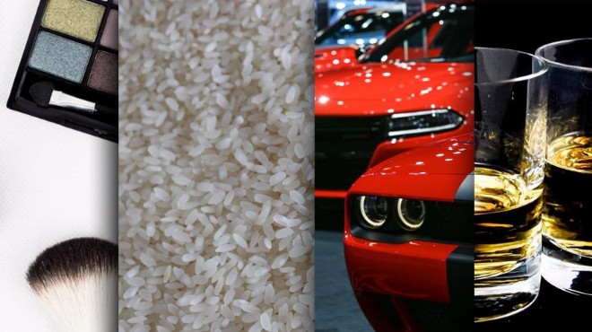 Diğer sert kabuklu meyveler (taze veya kurutulmuş, kabuğu çıkarılmış veya soyulmuş olsun olmasın) yüzde 20, pirinç yüzde 50, diğerleri yüzde 20, alkol derecesi hacim itibarıyla yüzde 80'den az olan tağyir (denatüre) edilmemiş etil alkol; damıtım yoluyla elde edilen alkollü içkiler, likörler ve diğer alkollü içecekler yüzde 140, yaprak tütün ve tütün döküntüleri yüzde 60, taş kömürü; taş kömüründen elde edilen briketler, topak ve benzeri katı yakıtlar yüzde 13,7, taş kömürü, linyit ve turbadan elde edilen kok ve semikok (aglomere edilmiş olsun olmasın); karni kömürü yüzde 10, kalsine edilmemiş yüzde 4, güzellik veya makyaj müstahzarları ve cilt bakımı için müstahzarlar (ilaçlar hariç, güneş kremleri veya güneşlenme müstahzarları dahil); manikür ve pedikür müstahzarları yüzde 60, poli (vinil klorür, diğer herhangi bir maddeyle karıştırılmamış, PVC) yüzde 50, poliamid -6, -11, -12, -6,6, -6,9, -6,10 veya -6,12 yüzde 10, plastikten diğer eşya ve 39.01 ila 39.14 pozisyonlarında belirtilen diğer maddelerden eşya yüzde 60, yakmaya mahsus ağaçlar (kütük, odun, çalı-çırpı demetleri halinde veya benzeri şekillerde); ince dilimler veya yongalar halinde ağaç; testere talaşı ve odun, döküntü ve artıkları (kütük, briket, topak veya benzeri şekillerde aglomere edilmiş olsun olmasın) yüzde 10, sıvanmamış kağıt ve karton (yazma, basma ve diğer grafik işlerinde kullanılan türden) ve her boyutta perfore edilmemiş delikli kart ve delikli şerit kağıt (rulo veya dikdörtgen -kare dahil- tabaka halinde), (48.01 ve 48.03 pozisyonundaki kağıt hariç); el yapısı kağıt ve karton yüzde 20, birincil elyaf (kraft) kağıt ve kartonları (kuşe edilmemiş, sıvanmamış, rulo veya tabaka halinde, 48.02 ve 48.03 pozisyonundakiler hariç) yüzde 20, kağıt, karton, selüloz vatka ve selüloz liften tabakalar (sıvanmış, emdirilmiş, kaplanmış, yüzeyleri boyanmış, yüzeyleri dekore edilmiş veya baskı yapılmış, her boyutta rulo veya dikdörtgen -kare dahil- tabaka halinde, 48.03, 48.09, 48.10 pozisyonundakiler hariç) yüzde 50, suni filament demetleri selüloz asetattan olanlar yüzde 60, diğerleri yüzde 60, diğer santrifüj pompalar yüzde 20, diğerleri yüzde 20, binek otomobilleri ve esas itibarıyla insan taşımak üzere imal edilmiş diğer motorlu taşıtlar (87.02 pozisyonuna girenler hariç, steyşın vagonlar ve yarış arabaları dahil) yüzde 120, diğer amaçlarla kullanılanlar yüzde 10.