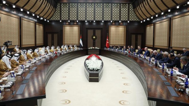 "Daha 3 yıl öncesine kadar, 'ticaret hacminde 10 milyar dolara ulaşır mıyız?' diye hesap yaparken bu yıl 20 milyar doları aşmayı temenni ediyoruz. Orta vadeli hedefimiz olan 40 milyar dolara da her iki tarafın kararlı adımlarıyla ulaşacağımıza inanıyorum. Bu arka plan ışığında değerli kardeşimle az önce verimli bir görüşme gerçekleştirdik. Sadece ikili meseleleri değil Gazze başta olmak üzere Türkiye ve Birleşik Arap Emirlikleri olarak bölgesel meselelerde atabileceğimiz adımları etraflıca değerlendirdik. İmzalayacağımız anlaşmalarla da ilişkilerimizi daha ileriye taşıyacağız. Rabb'im yar ve yardımcımız olsun diyor, kıymetli kardeşime iş birliğimize yaptığı katkılar için bu vesileyle bir kez daha teşekkür ediyorum."