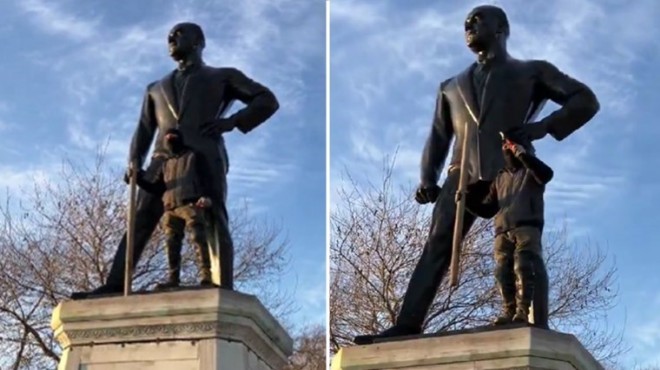 Sabah saatlerinde kimliği belirsiz ve yüzü kar maskeli bir şahıs, elindeki bir çekiçle çıktığı anıta zarar vermeye çalıştı.