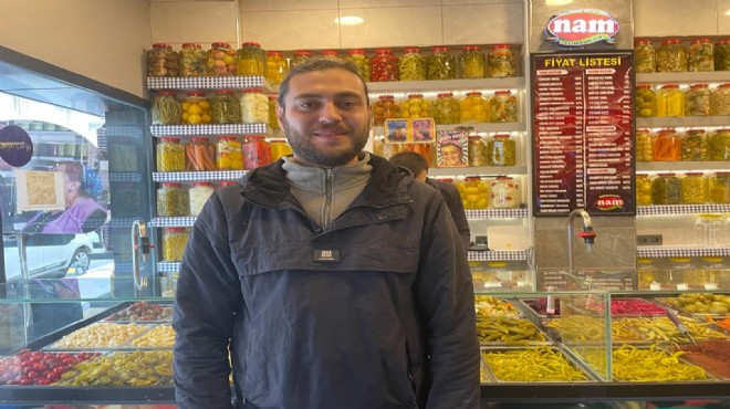 İzmir'in Konak ilçesinde turşuculuk yapan esnaf, teşhirdeki turşu kavanozunu çalan kişiye, ürünün son tüketim tarihinin geçmiş olduğunu belirterek uyarıda bulundu.