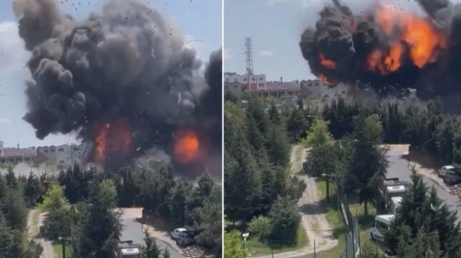 Yangın nedeniyle yoğun duman oluşurken, iş yerinde zaman zaman şiddetli patlamalar oldu.