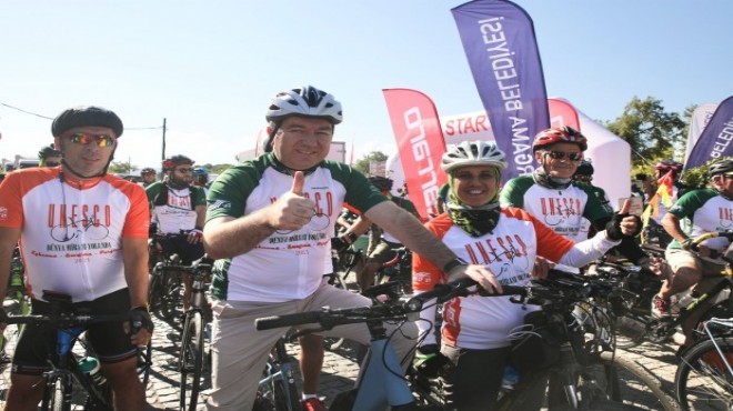 Bergama ve Selçuk olmak üzere 2 ayrı noktadan eş zamanlı başlayan tura Bergama'dan (Kızılavlu) 150, Selçuk'dan (Efes) 150 sporcu katıldı. Bergama ve Selçuk Belediyeleri ortaklığında, İzmir Valiliği, İzmir Büyükşehir Belediyesi ve UNESCO Türkiye Milli Komisyonu işbirliğiyle gerçekleşen tur, iki ayrı dünya mirasından Bergama ve Selçuk’tan sabah saat 10.00'da aynı anda başladı. İzmir Cumhuriyet Meydanı'nda saat 19.00'da yapılacak törenle tamamlanacak olan UNESCO Dünya Mirası Bisiklet Turu, aynı zamanda İzmir'den UNESCO Dünya Mirası'na aday Smyrna için de farkındalık oluşturup, destek verecek.