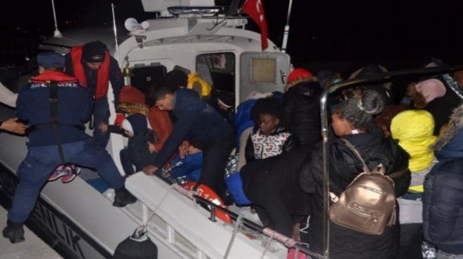 ?Yasadışı yollardan Yunan adalarına geçmeye çalışan grup, görevlendirilen Sahil Güvenlik botu tarafından durdurdu. Lastik bottaki 17'si Suriye, 11'i Somali, 8'i Kongo, 4'ü Irak ve 1'i Etiyopya uyruklu olmak üzere toplam 41 kaçak yakalandı. 12'si erkek, 15'i kadın ve 14'ü çocuk olan grup, Sahil Güvenlik botuyla kıyıya getirildi. Kaçaklar, kimlik tespit işlemi sonrası İl Göç İdaresi Müdürlüğü'ne teslim edildi. (DHA)