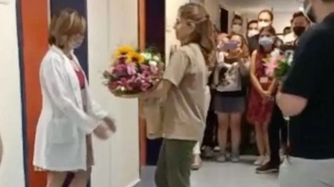 İstifa sonrası asistan hekimler Akarsu’yun odasının önünde toplanarak çiçeklerle hocalarına veda etti. (Cumhuriyet-Yusuf Körükmez)