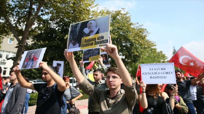 Atatürkçü Düşünce Topluluğu öncülüğünde 27 öğrenci topluluğunun desteğiyle Ege Üniversitesi Yerleşkesi'nde bir araya gelen öğrenciler, "Şehitler ölmez vatan bölünmez", "Kahrolsun PKK", "Atatürk gençliği görev başında" şeklinde slogan attı.
