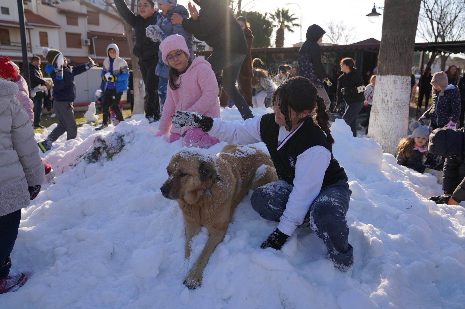Ürkmez’e getirilen kar sürpriziyle büyük sevinç yaşayan minikler, oyunlar ve eğlenceli etkinliklerle tatilin keyfini çıkardı.