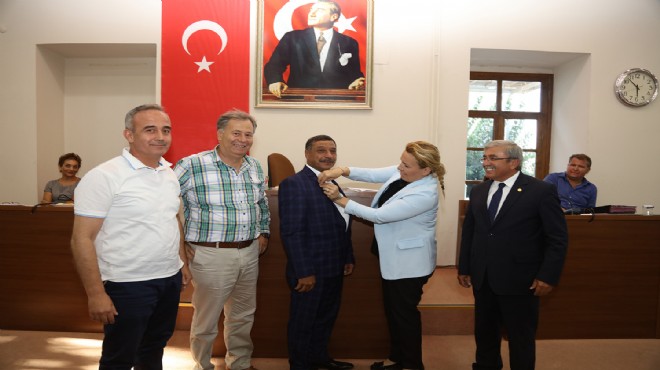 Urla Belediyesi Meclis Üyeliğinde boşalan koltuğa Eşref Kalkan oturdu. Urla Belediyesi Meclis Üyesi olan Ayşın Akyarlı Savatlı’nın istifası üzerine yedek üye olan Eşref Kalkan Meclis Üyeliğindeki yerini aldı. Bugün yapılan Meclis Toplantısında Kalkan’a, Urla Belediye Başkanı Sibel Uyar başta olmak üzere, CHP Grubu Başkanı A. Bahri Yalaz, MHP Grubu Başkanı Remzi Taktakoğlu ve AKP Grubu Başkanı Mehmet Duman tarafından Meclis Üyeliği rozeti takıldı.