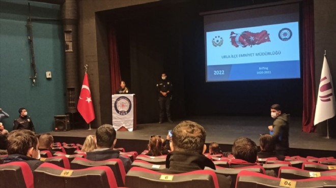 Urla Atatürk Kültür Merkezi'ndeki toplantıya, İlçe Emniyet Müdürü Zeynep Erdoğan'ın yanı sıra emniyet müdürlüğünde görevli birim amirleri, bekçiler ve muhtarlar katıldı.