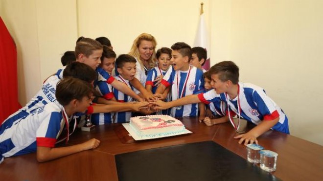 Minikler kupalarını Urla Belediye Başkanı Sibel Uyar'a armağan etti. Hiç yenilmeden ikinci olan Urlalı minik futbolcuları alınlarından öpen Başkan Sibel Uyar da takım üyelerine madalya taktı.