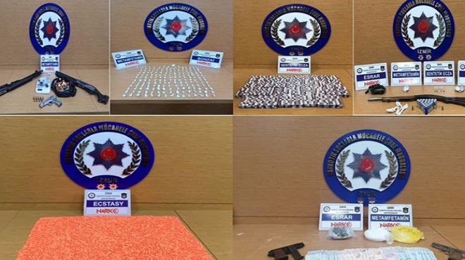 İzmir Emniyet Müdürlüğü'nün sosyal medya hesabından yapılan açıklamaya göre Narkotik Suçlarla Mücadele Şube Müdürlüğü ekiplerinin 02 - 15 Ağustos tarihleri arasında kent genelindeki operasyonlarında 91 şüpheli gözaltına alındı.